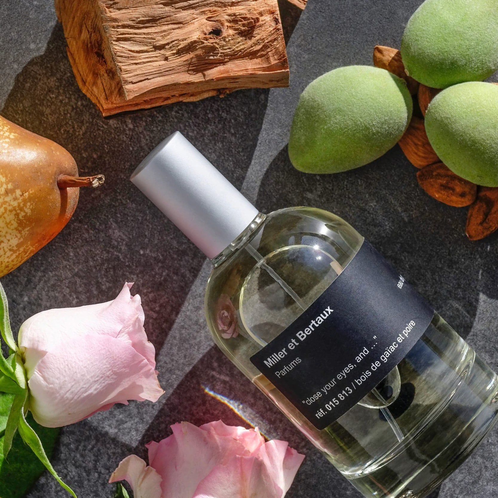 « Close your eyes, and… » is a modern tribute to the great scents of old. It is a true olfactory folly of over forty ingredients. It arises on the skin as a balm, like a veil. Wood asserts itself as the olfactory signature of Miller and Bertaux.